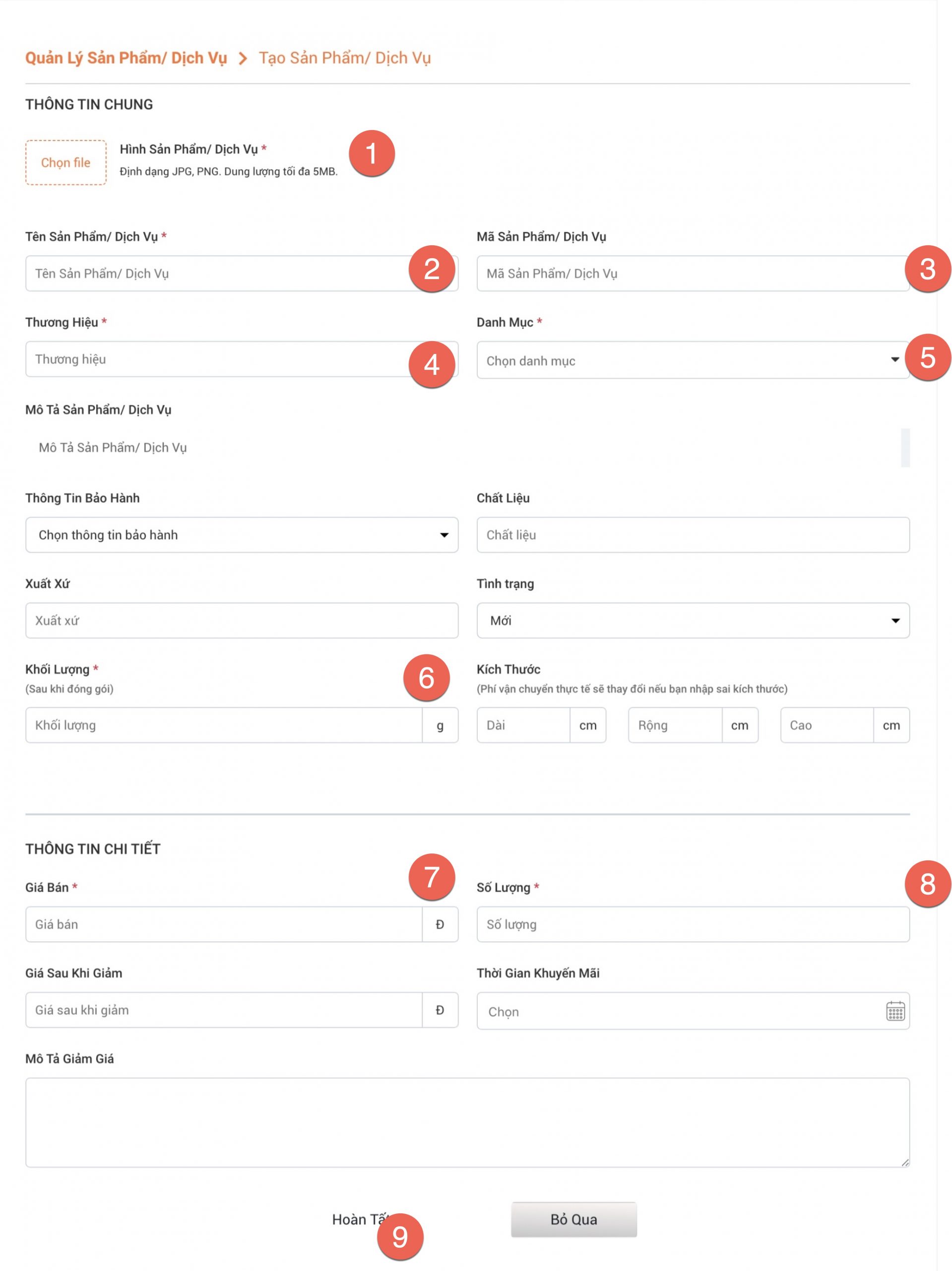 - Sau khi điền đầy đủ các thông tin trên, người bán có thể nhấn nút “Hoàn tất”